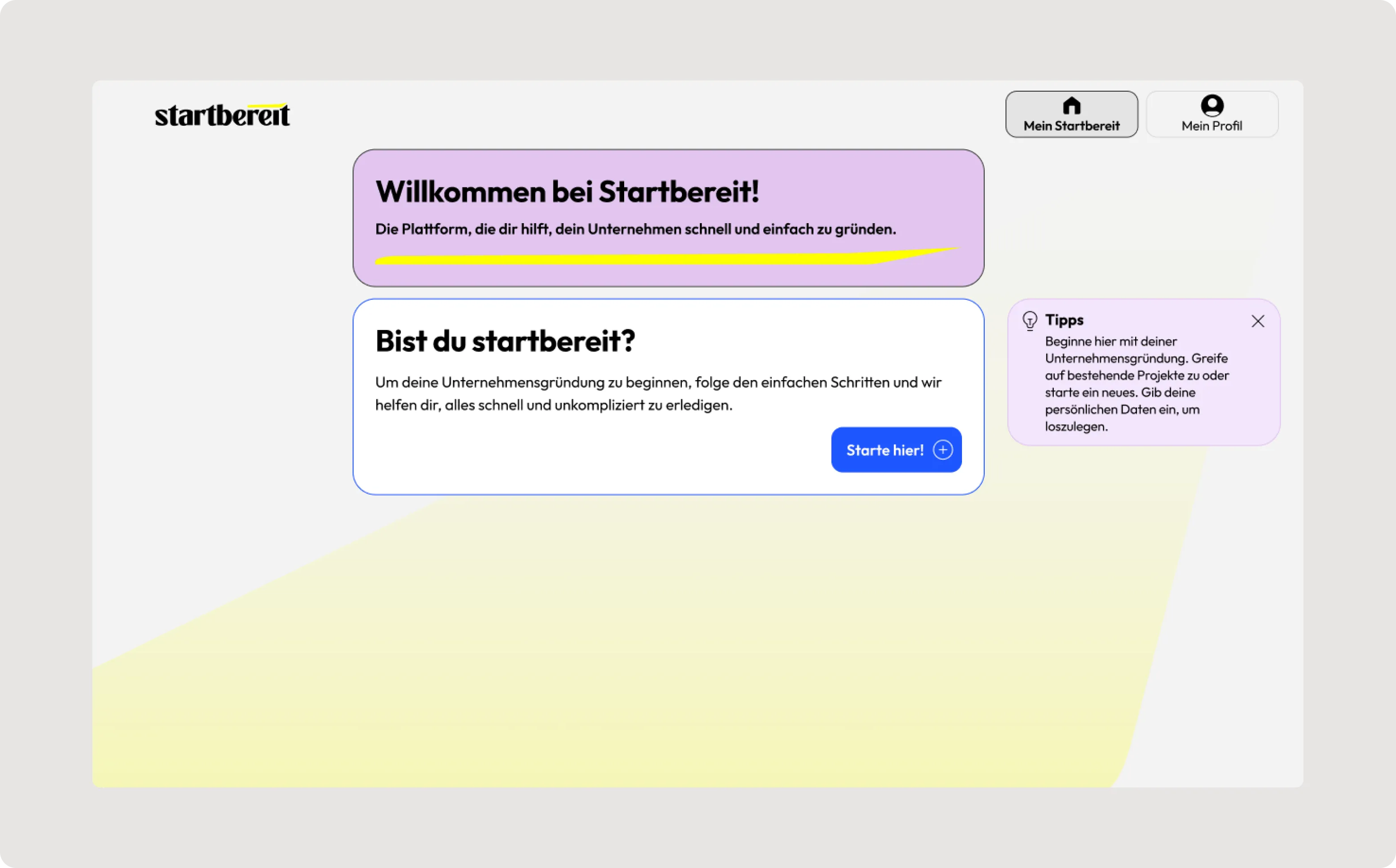 The primary challenge was to build a secure, GDPR-compliant web app quickly and cost-effectively, with an emphasis on ease of use and high performance. Startbereit required an MVP that offered an intuitive interface and smooth user experience. Key project requirements included EU-based hosting for data protection and compliance.