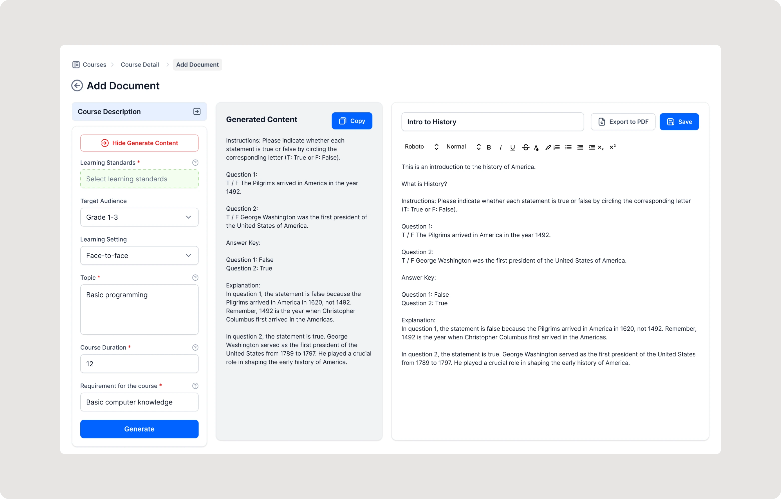 The initial version of TrainingOS required educators to manually create lesson plans, learning objectives, and assessment questions. While effective, this process was time-consuming. The goal was clear: reduce the manual workload for educators and enhance the quality of educational content.