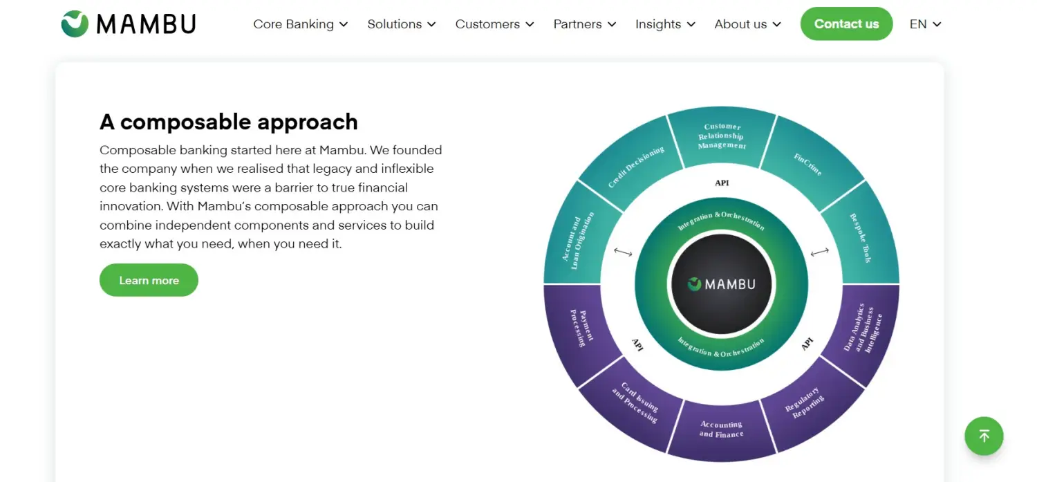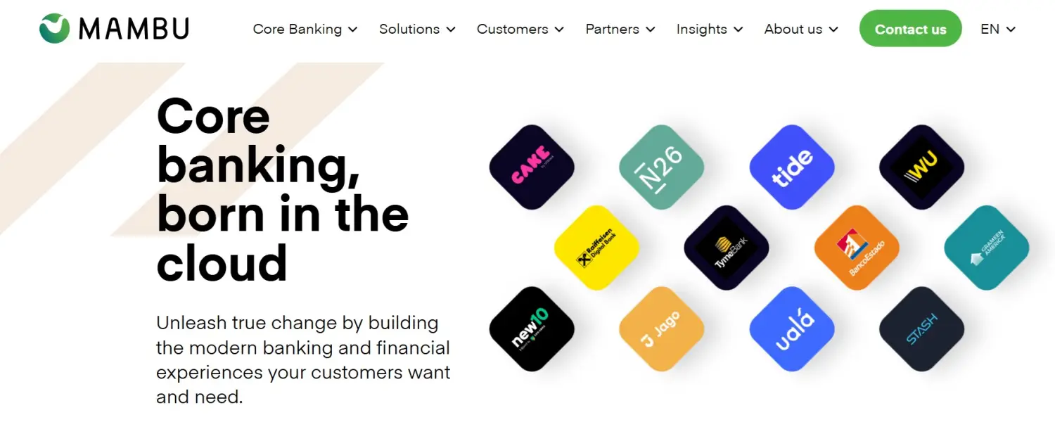 Cloud-native banking platform, API-first, used by banks and fintechs for core banking operations and services.