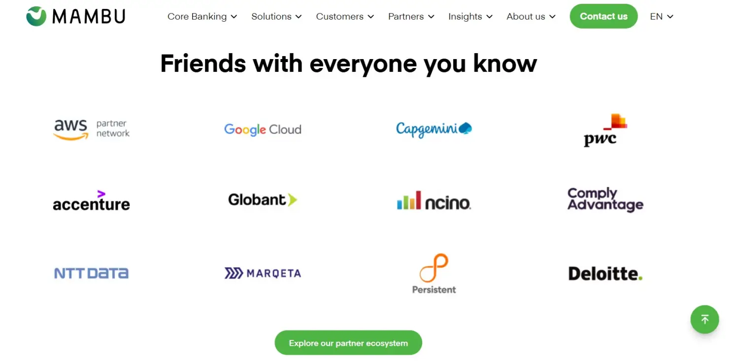 Financial institutions building on Mambu often integrate global payment gateways like Adyen or connect to consumer-facing platforms such as Revolut to enhance their end-user experience.